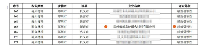 10月26日,在河南省生態(tài)環(huán)境廳印發(fā)了《關(guān)于發(fā)布重污染天氣重點(diǎn)行業(yè)績(jī)效評(píng)級(jí)結(jié)果的公告》(〔2020〕年11號(hào))中,鄭州榮盛窯爐耐火材料有限公司獲評(píng)“績(jī)效引領(lǐng)性企業(yè)”,這是繼公司榮獲“高新技術(shù)企業(yè)”、省級(jí)“科技型中小企業(yè)”后,再添喜訊。